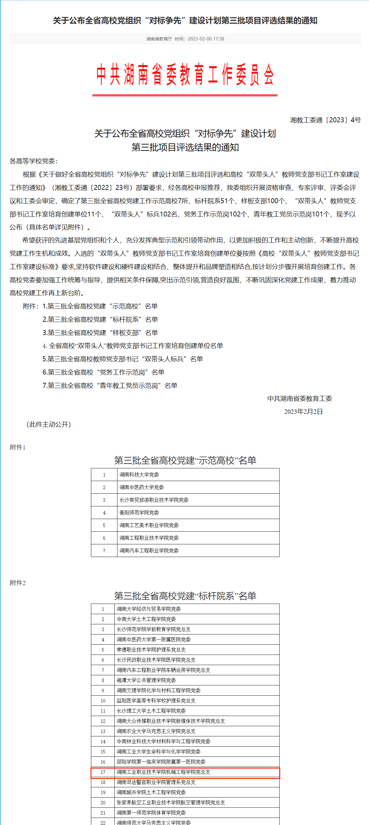 机械工程学院党总支入选湖南省第三批高校党建“标杆院系”