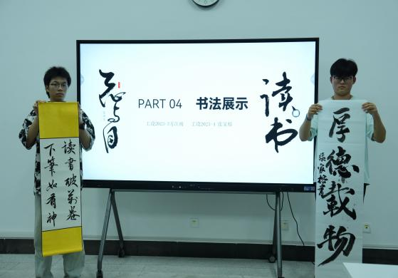 交流会上,同学们积极性很高,畅所欲言,他们声情并茂地和大家交流自己读书的感受,分享读书的快乐,有的学生畅谈自己身上难忘而快乐的读书经历,还有的学生分享了自己通过读书得到的收获,整个互动环节在轻松愉快的氛围中进行。在读书会现场还有两位学生展示了书法技艺,让学生感受中国书画之美,领略传统文化魅力。